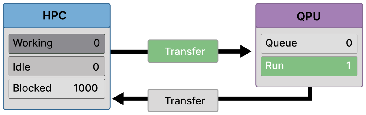 Frame 4 — First execution starts, but it’s still transfer-dominated (1000 blocked, QPU Run = 1)¶